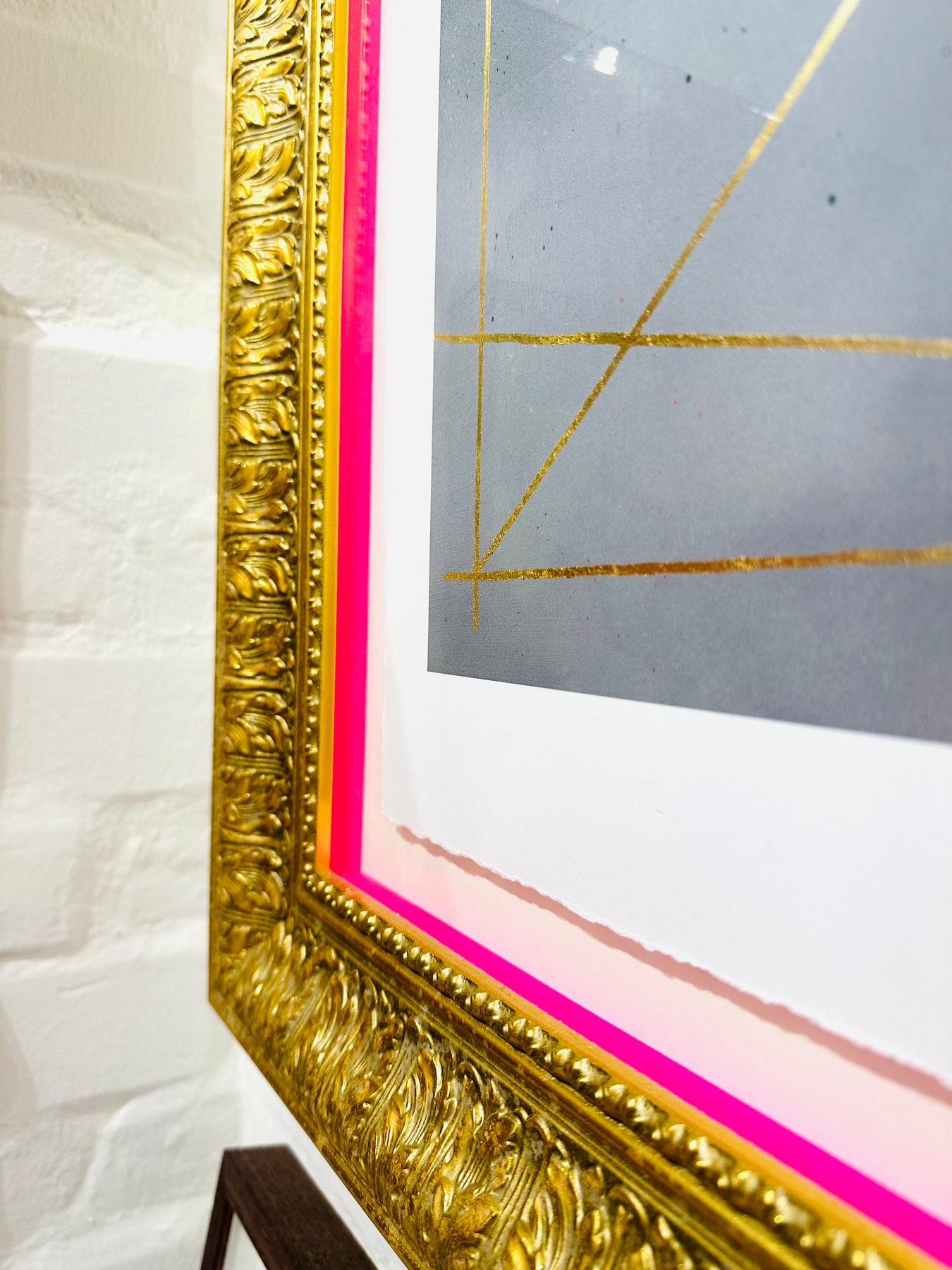 FRAMiNG: We have framed this artwork floated forward in a white, black or ornate gold frame with neon pink fillets.