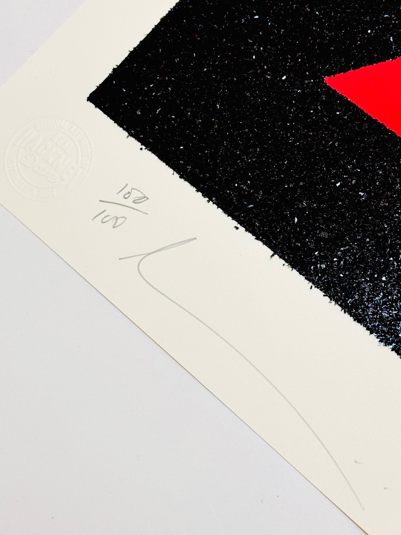 PROCESS: Two layer screen print with black diamond dust