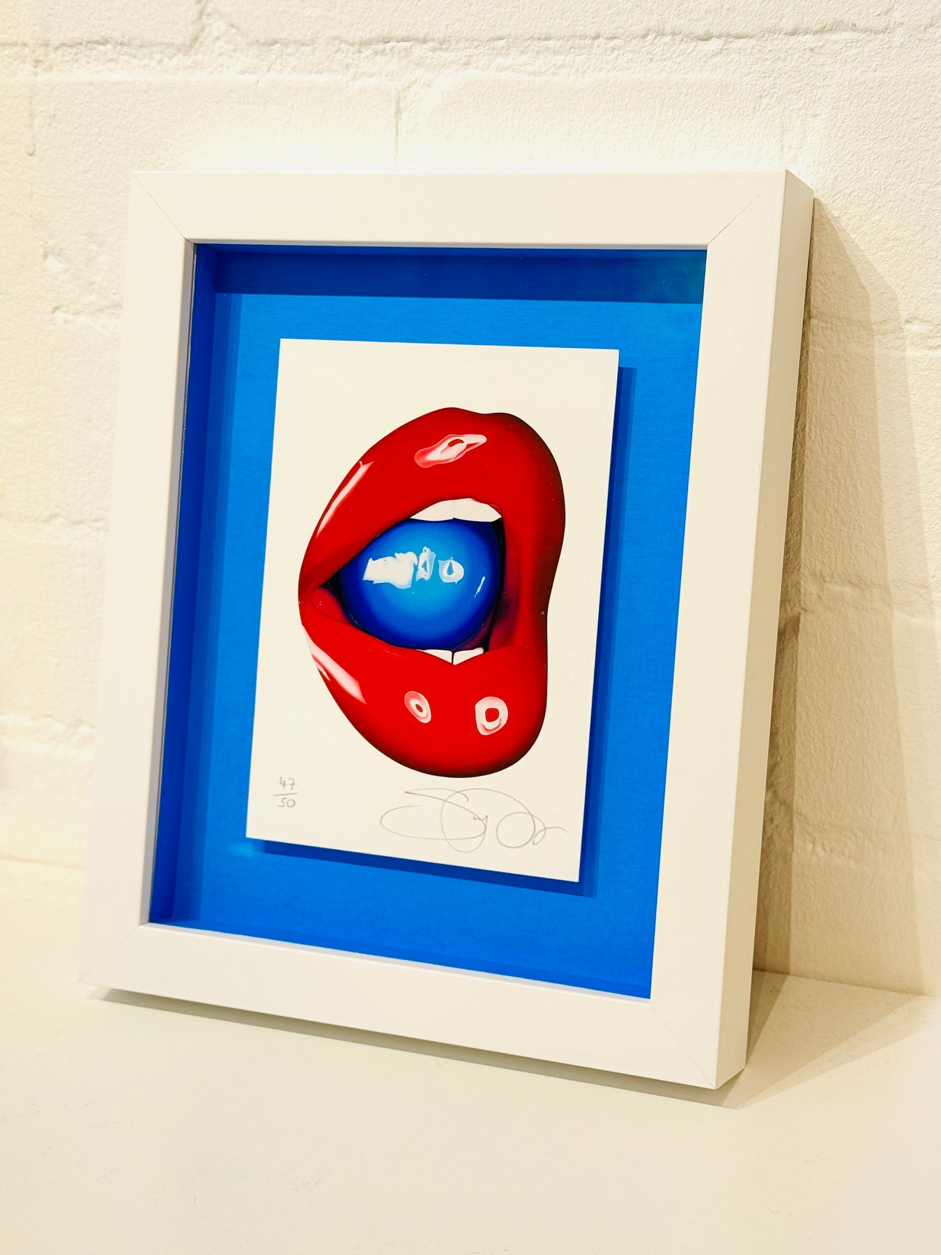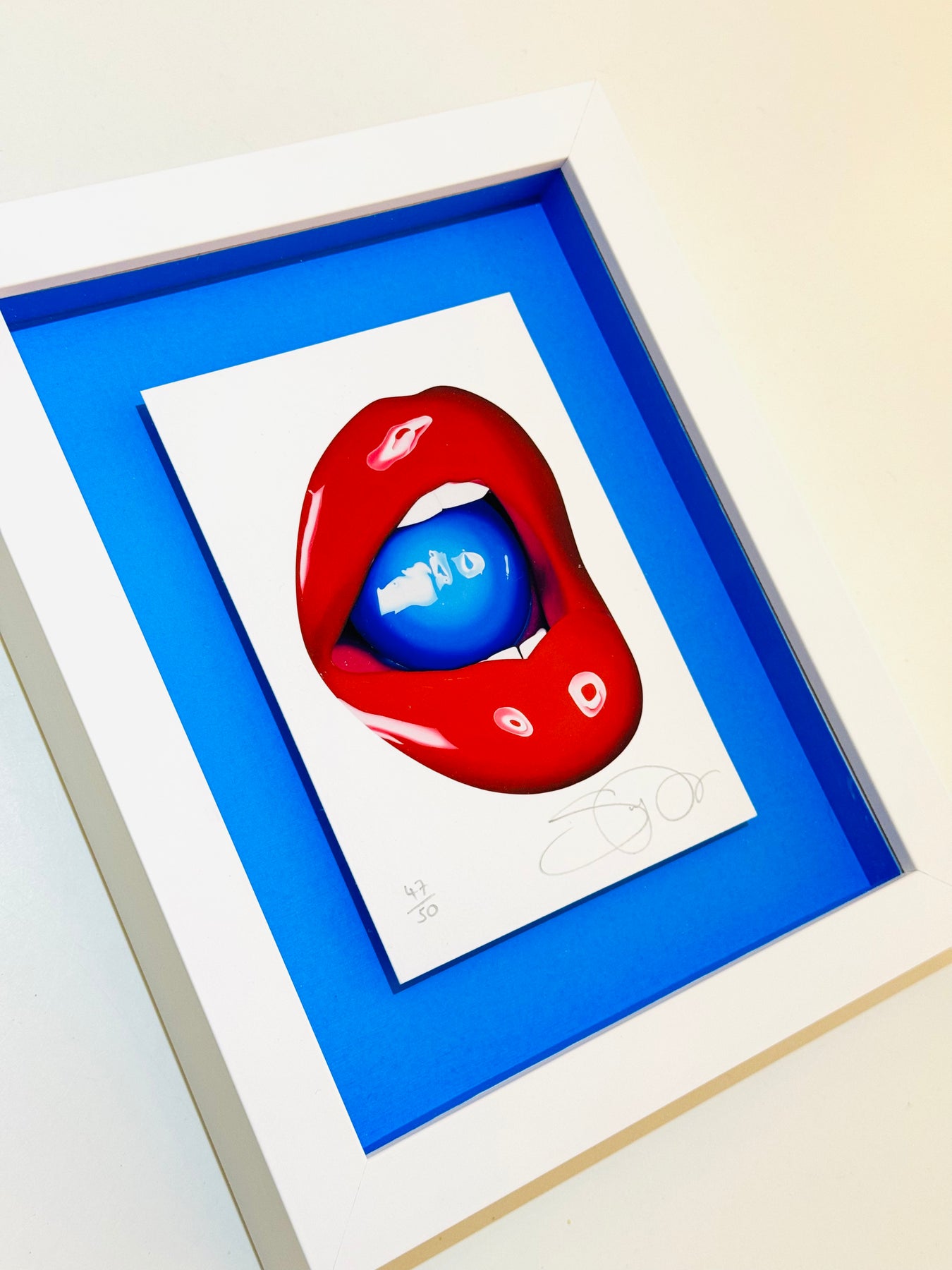 *Curator's pick  is framed as exactly as seen - floated forwards with a 30mm border in a white frame with an electric blue mount and matching fillets*